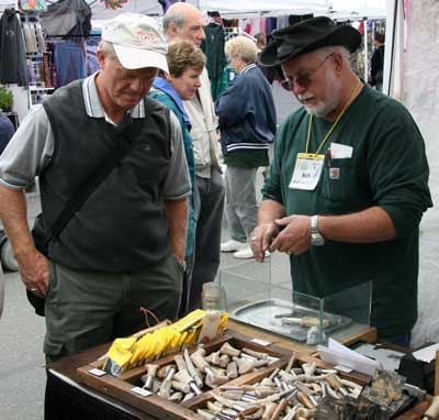 ![]() Bob is describing to a potential customer how the antler handled, magnesium & flint Fire Starters work |