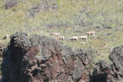 ![]() Above and below, some Big Horn Sheep graze on the hill side |