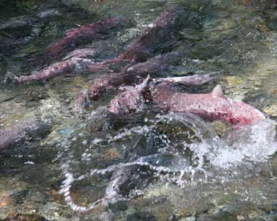 ![]() They are furious to get upstream to lay their eggs - an amazing feat of nature |