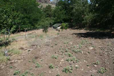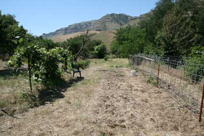 ![]() They are beginning to start their garden, here with the grape vine on the left. |